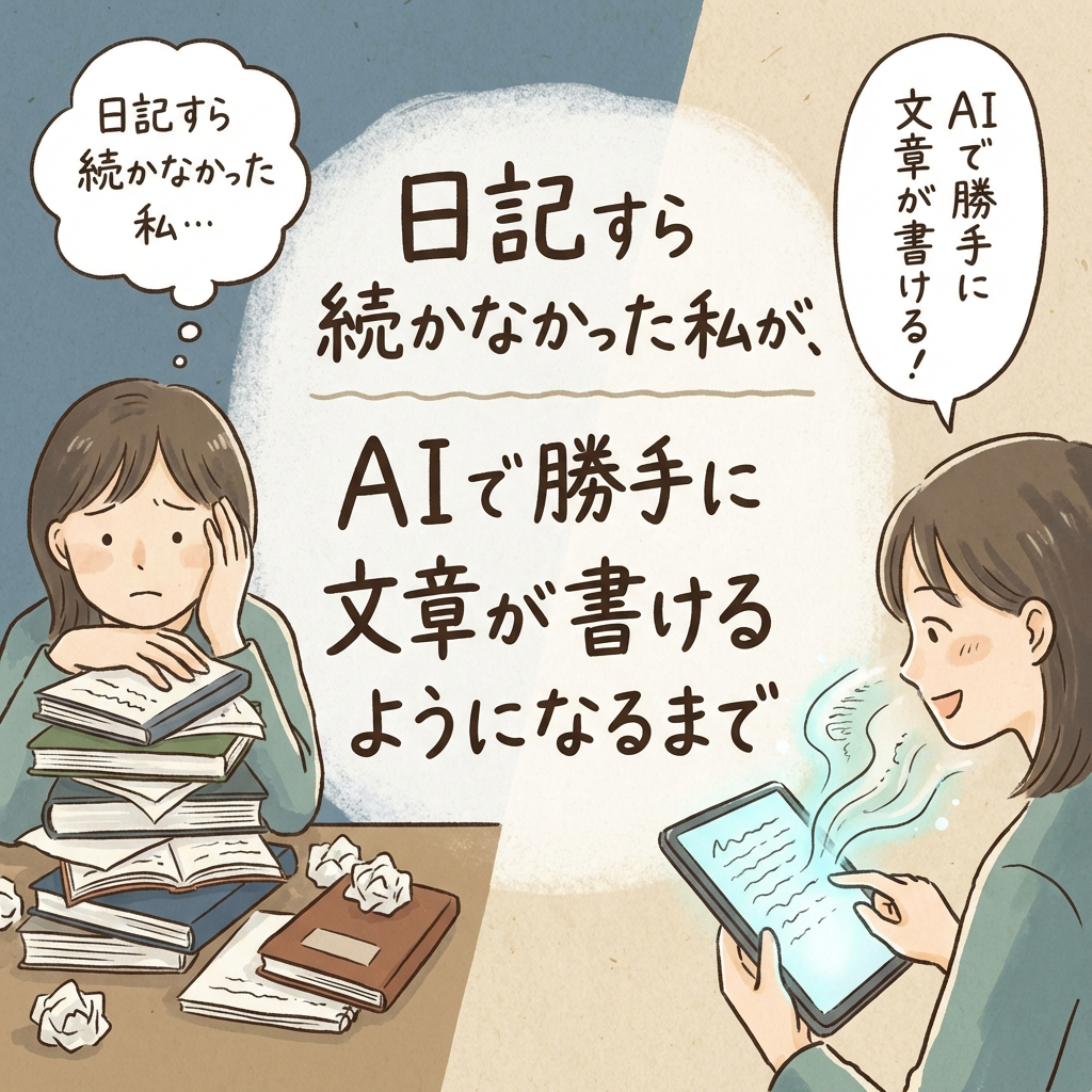 実は、私もそうでした。日記をつけてみたけど、3日でやめました。白紙の画面とにらめっこして、1時間経っても一文字も書けなかった。それが、今では「書く」こと自体が、もう必要ないんです。